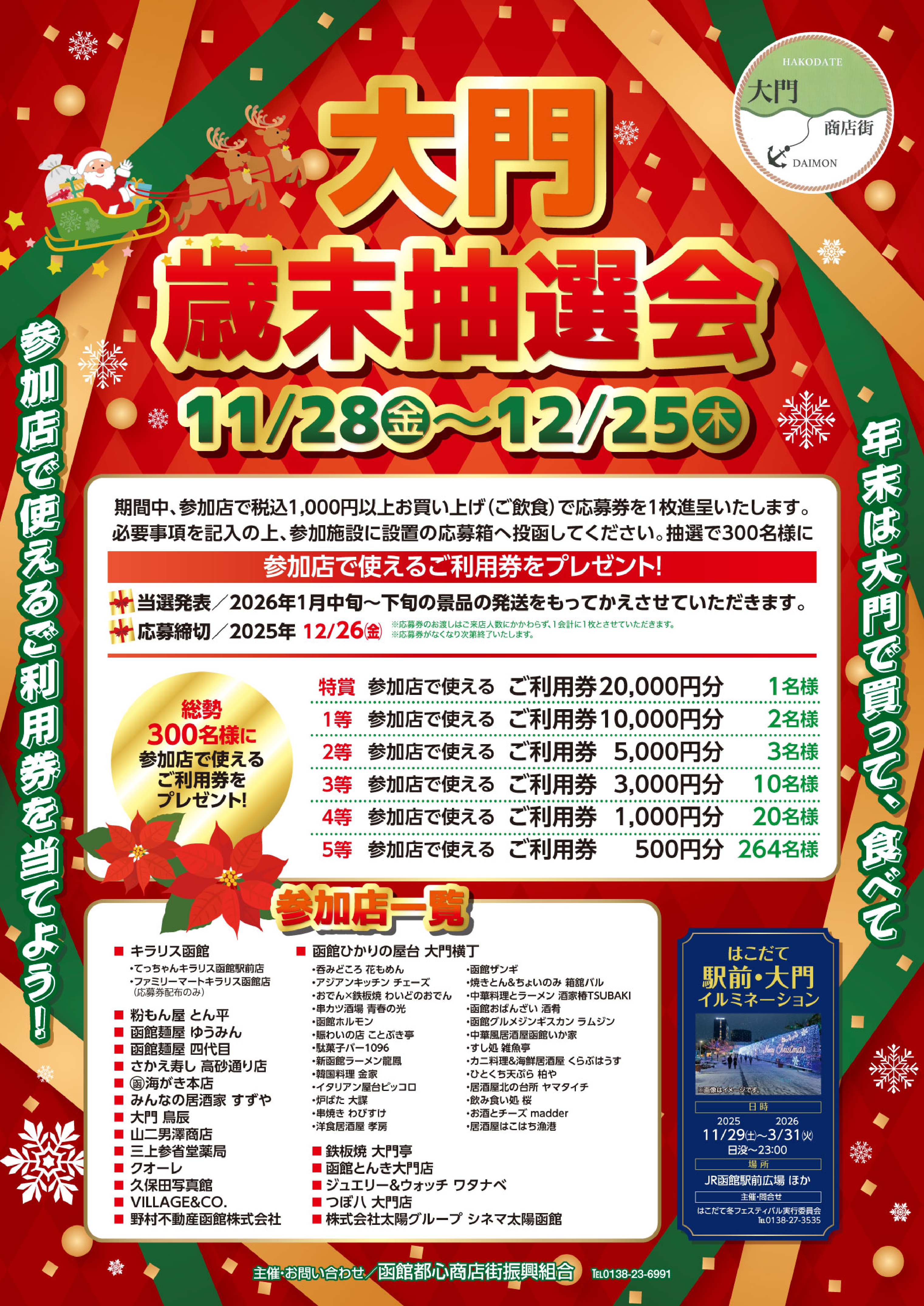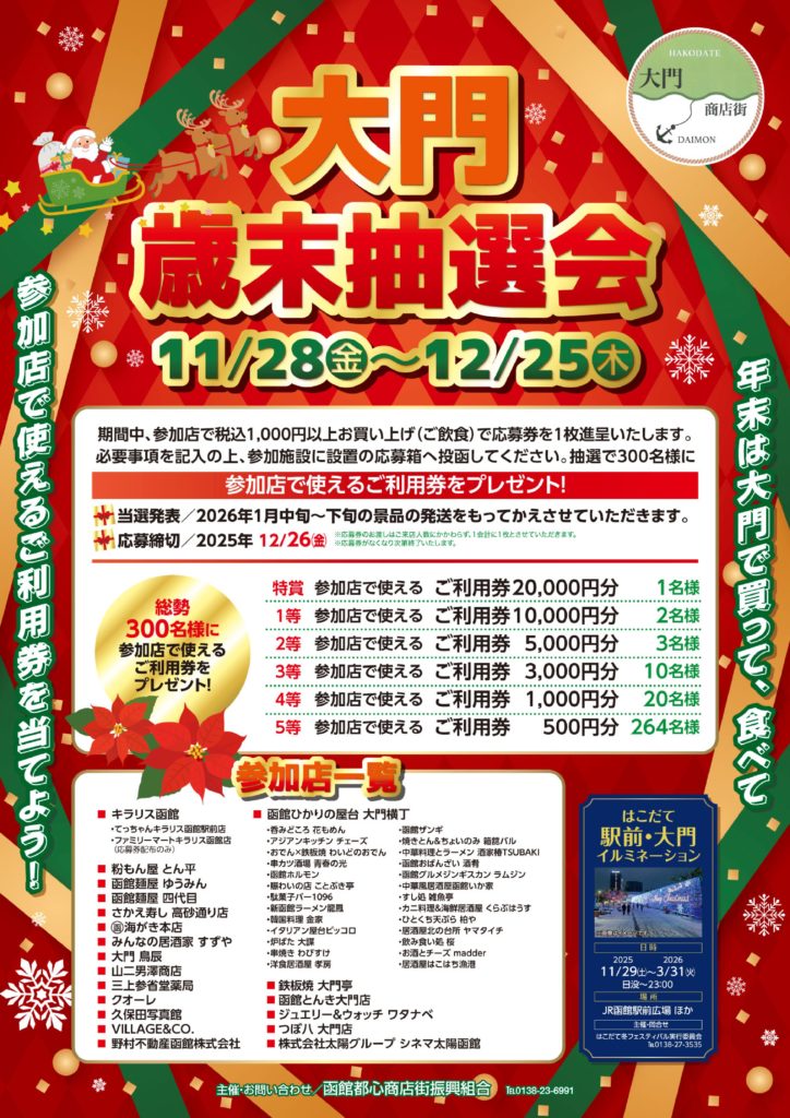 函館都心商店街振興組合(函館だいもん商店街)では今年も一年の感謝を込めて大門歳末抽選会を開催いたします。